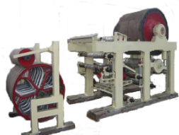 小型造紙機(jī)齒輪傳動(dòng),由齒輪傳動(dòng)或由毛布帶動(dòng)若干個(gè)烘缸為一組,若干組烘缸構(gòu)成干燥部。各組烘缸的線速度可以分別調(diào)整,保持各組烘缸之間微量速差以補(bǔ)償紙頁(yè)在干燥過(guò)程中的收縮。出干燥部的紙頁(yè)干度一般在92~94%左右。在干燥部末端,一般配有冷缸,使水氣能在冷缸面上凝聚。冷凝水可以濕潤(rùn)紙頁(yè)表面以利于在整飾中得到較佳的表面平滑度。烘缸直徑以1.5m的效果。單面光紙可以通過(guò)采用高硬度、高光潔度缸面的大直徑烘缸而得到較高的單面光澤度,大直徑烘缸直徑一般采用3~7.5m。